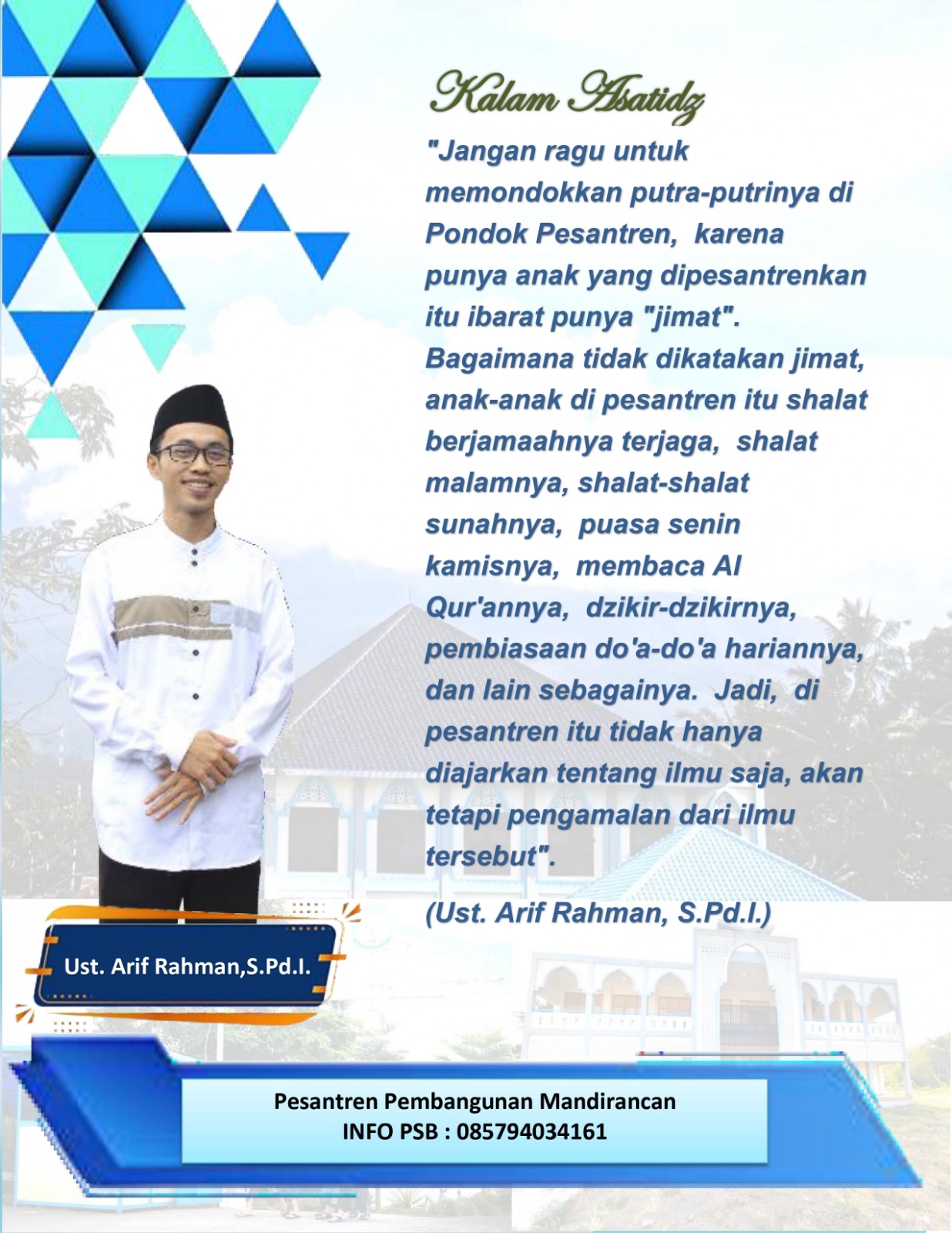 Info penerimaan santri baru : Ust. Arif 085794034161